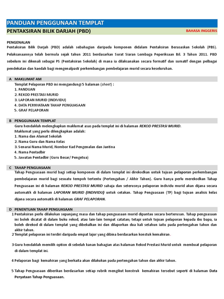 Templat Pelaporan Pentaksiran Bilik Darjah Pbd Versi 3 0 Baru Pendidik2u